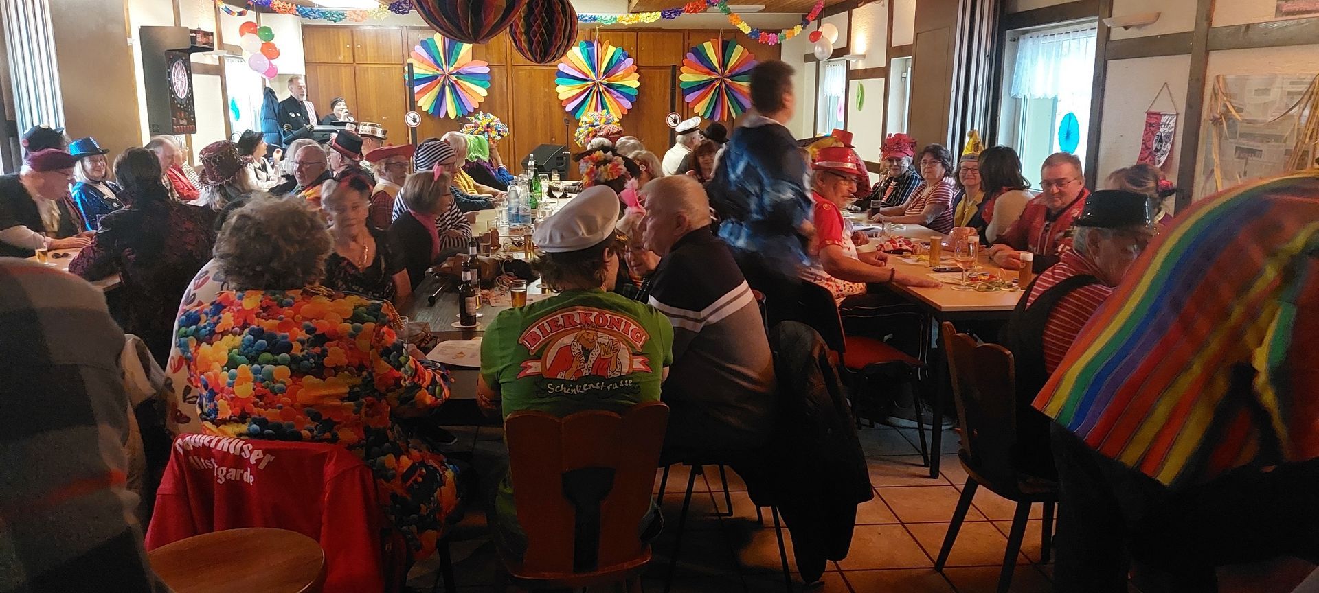 Die Karnevalszeit beginnt zwar erst in ein paar Wochen, aber die Einstimmung auf die närrische Zeit gelang nun stimmungsvoll im Vereinsheim bei unserem „Rheinischen Frühschoppen“. Wie immer waren rheinisch/kölsche Karnevalsgrößen verpflichtet worden, die mit humorvollen launischen Worten und Gute Laune- und Schunkelliedern das größtenteils närrisch verkleidete Publikum immer wieder zum Lachen, Schmunzeln und Mitsingen anregte. Für das lokaljecke Kolorit sorgte das Männerballett der Dhünnschen Jecken mit seinem furiosen spektakulären Auftritt. Das abwechslungsreiche Programm umfasste von der temperamentvollen „Kuhstall-Liesel“ mit ihrem leicht erotischen Humor -meist zu Lasten ihres Ehemanns Herbert- angefangen bis zu dem „Bauer und dem Wiener“, die mit Wiener Schmäh und derbem Kölsch es mehr auf ihre Ehefrauen abgesehen hatten, weitere Auftritte und Höhepunkte. So die “Lebenskünstler vom Rhein“ und „Ne Spitzboov“ mit Potporris und Liedern bekannter Karnevalsschlager und „Die Henkelmännchen“ mit herrlichen Geschichten in Lied- und Gedichtform. Den krönenden Abschluss bildete dann das tolle Männerballett der Dhünnschen Jecken. Das Programm hätte mehr Besucher verdient gehabt und auch mehr unserer Mitglieder.