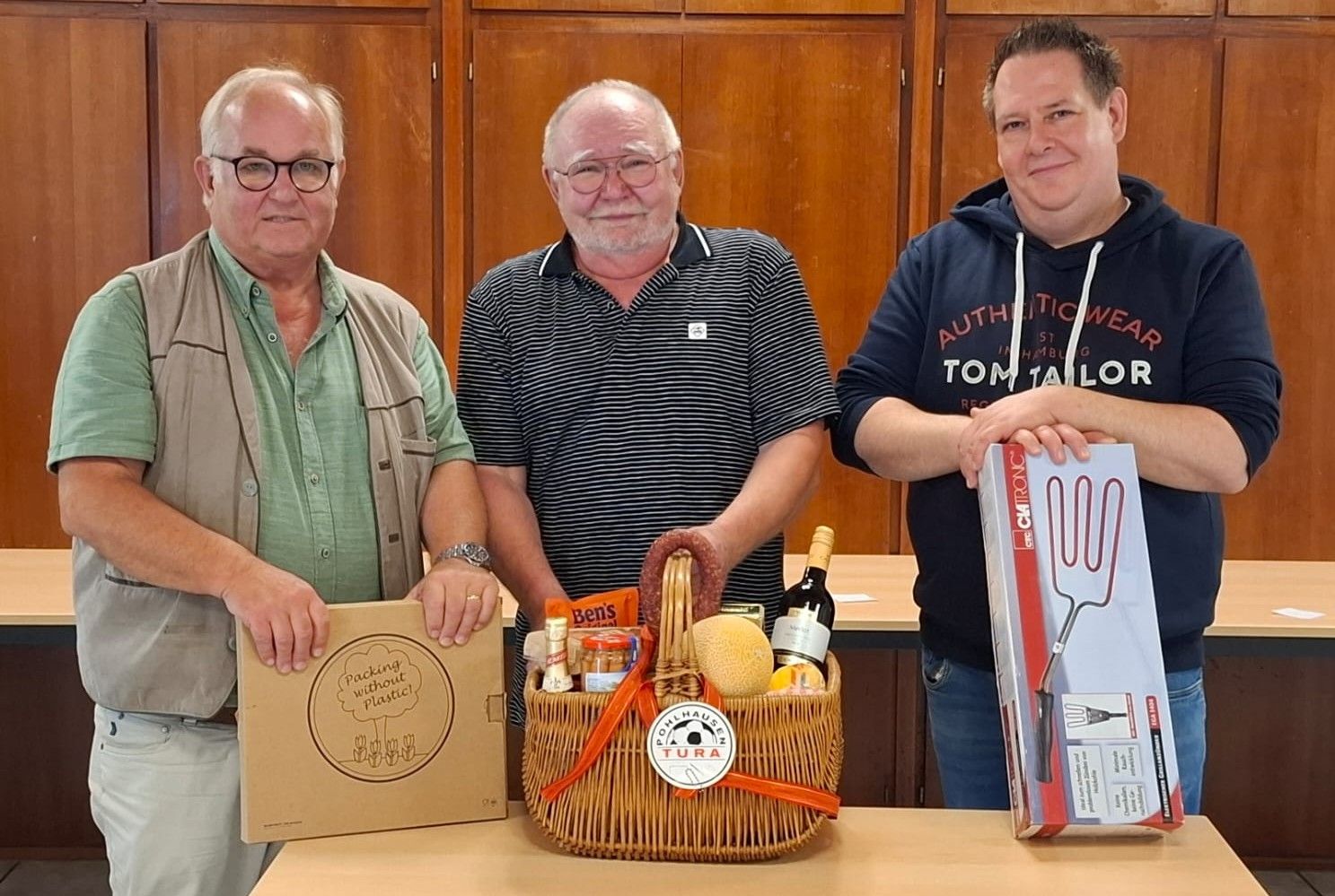 Der Letzte erhielt dieses Mal ein Büchlein mit optimistischen Sprüchen und wurde durch ein humoristisches Zitat daraus getröstet. Das auch ein Zeichen der familiär lockeren Stimmung, in welcher die Skatturniere von Tura Pohlhausen stattfinden, wozu auch das Geburtstagsständchen am Schluss für eine Mitspielerin gehörte. Das soll aber nicht darüber hinwegtäuschen, dass drei Runden lang konzentriert und engagagiert gespielt wurde. In den Pausen wurde dann weiter gefachsimpelt, aber auch Privates ausgetauscht und von den kulinarischen Angeboten wie Würstchen, Frikadellen und belegten Brötchen Gebrauch gemacht. Nach 60 Spielen an 6 Vierertischen und 45 Spielen an 3 Dreiertischen der 2 weiblichen und 23 männlichen Teilnehmern standen schließlich die Sieger fest. Die Preise bezogen sich dieses Mal schwerpunktmäßig auf das Grillen in Form von Büchern, Geräten und Getränken. Den gut gefüllten Präsentkorb allerdings gewann als Sieger Bernd Duscha mit 802 Punkten vor Norbert Stark mit 727 Punkten und Dirk Heckmann mit 691 Punkten.